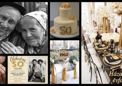 A dekorációban gyakran jelennek meg a pár történetéhez kapcsolódó elemek. Régi fényképek, emlékek vagy személyes részletek mind hozzájárulnak ahhoz, hogy az ünnep igazán különleges legyen. Egy jól megszervezett jubileumi esemény nemcsak egy ünnepség, hanem egy történet is, amely a család múltját és jelenét egyszerre mutatja meg.